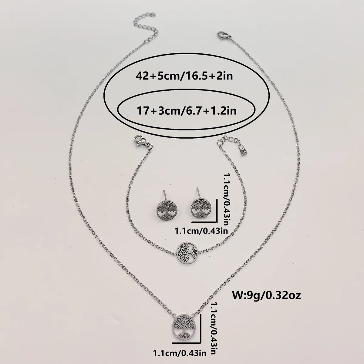 Ensemble 4 Pièces Arbre de Vie - Collier, Bracelet et Boucles d'Oreilles en Acier Inoxydable