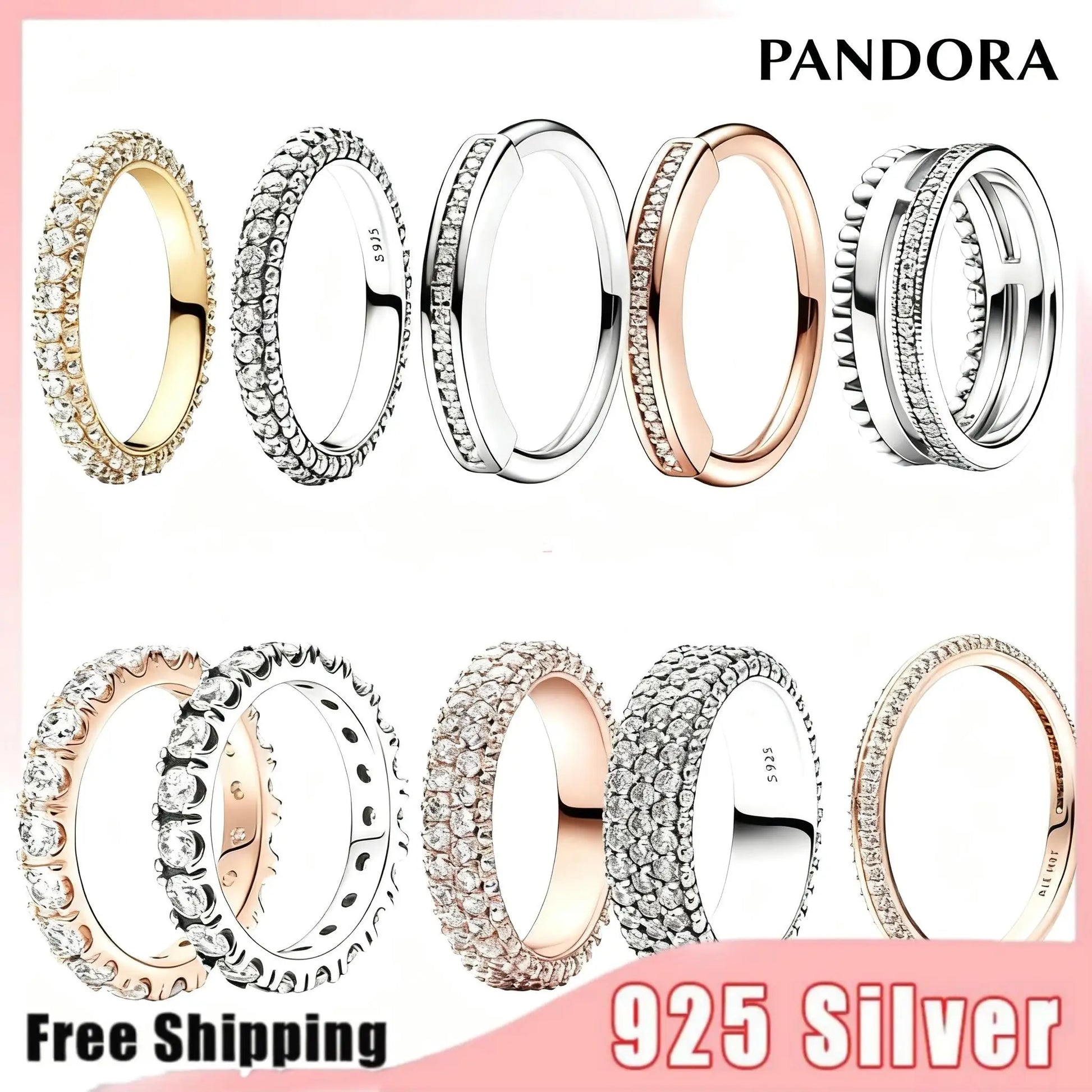 New Hot 925 Silver Colorful Timeless Pavé Triple-row Rings Wedding Diy Charm Luxury DIY Jewelry Gifts