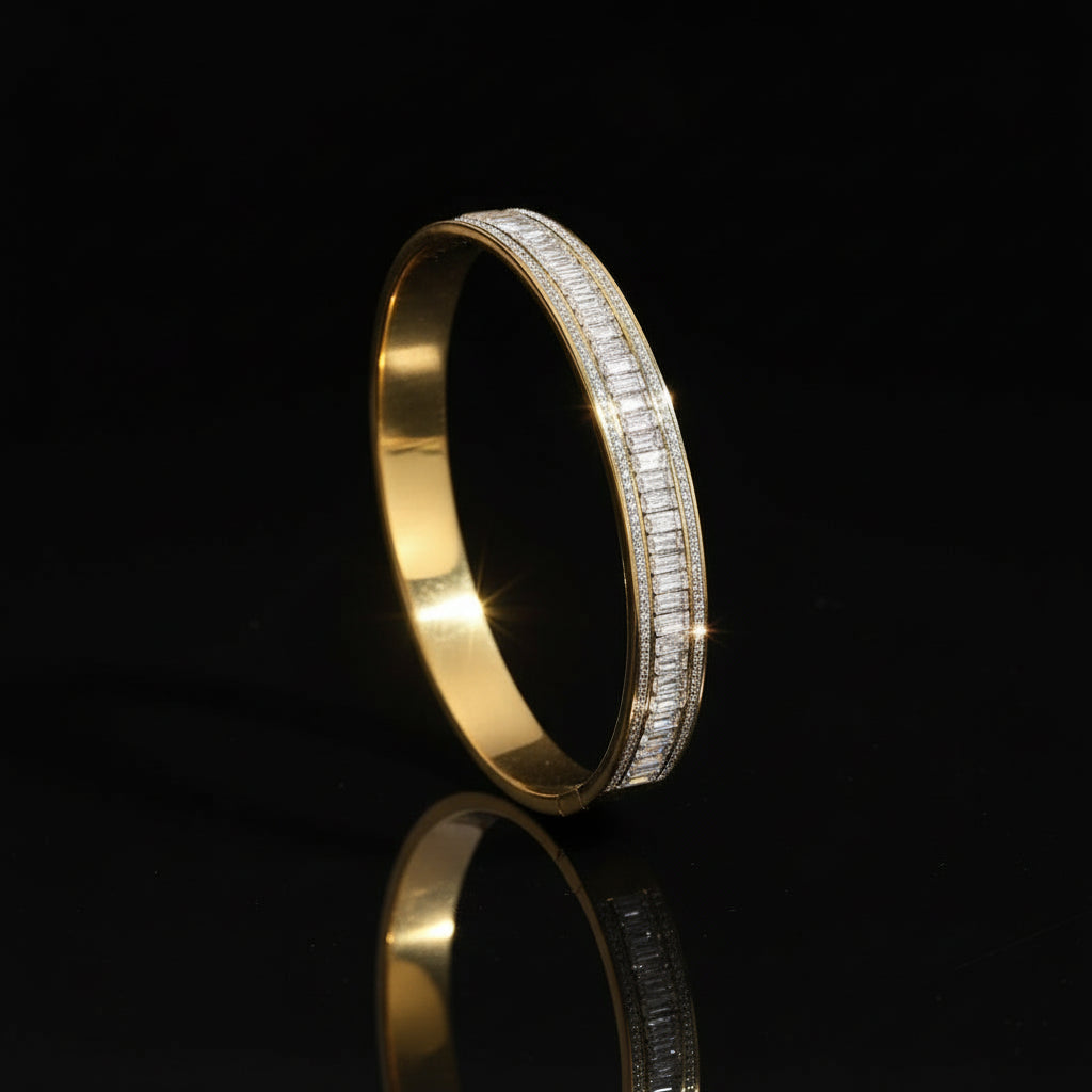 1 Bracelet Manchette Strass Acier Inoxydable - Style Rétro Waterproof Empilable