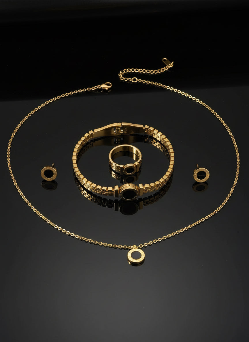 Adoptez un style raffiné et intemporel avec cet ensemble complet de 5 pièces en acier inoxydable. Le design chiffres romains apporte une touche sophistiquée et unique à votre look.
